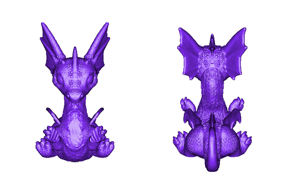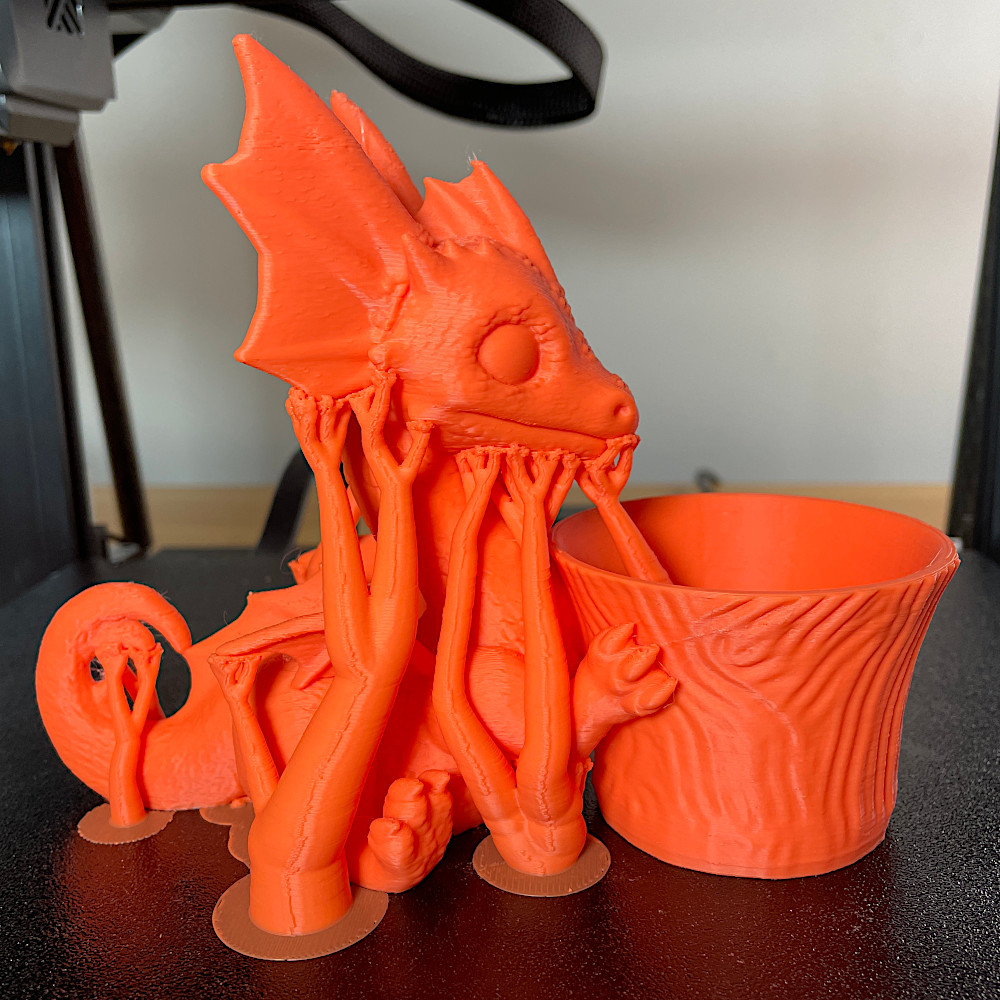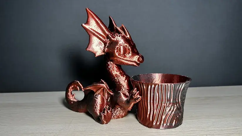 Такой дракончик получился в итоге. Его напечатали на Sovol SV08 филаментом с примесями металла